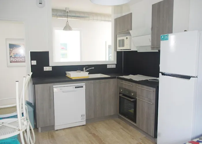 Obiekt jest wyposażony w pełnowymiarową kuchnię, gdzie goście mogą przyrządzać własne posiłki. W odległości 450 metrów znajduje się lokal Pizzalabio, w którym serwują dania kuchni włoskiej. Odległość od lotniska Tulon-Hyère wynosi 5 km, a od dworca autobusowego Potiniere - 400 metrów.